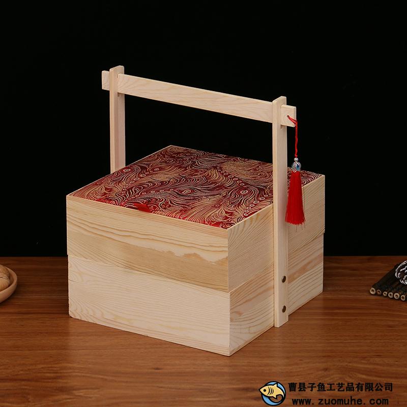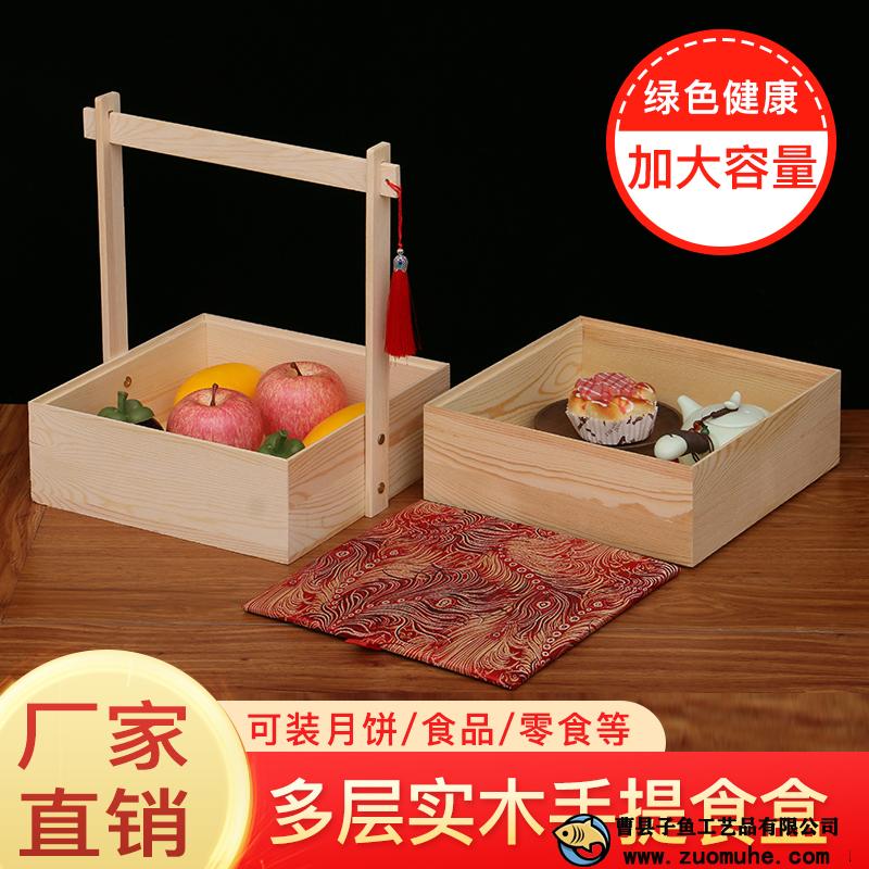 定做木制中秋月餅禮盒雙層提籃